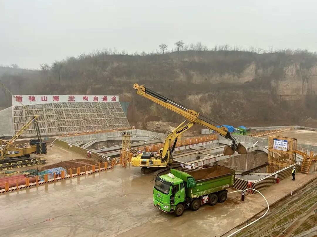 2 月 28 日,一场春雨滋润着中原大地,也为焦济洛平高铁的建设增添了几分生机。当日,顶端新闻记者来到焦济洛平高铁邙山隧道工程始发井施工现场,只见大型挖掘设备正在进行基坑开挖施工,现场一片忙碌景象。